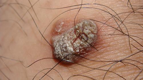 2、癥狀:初起為針尖大的丘疹,漸漸擴(kuò)大到豌豆大或更大,呈圓形或多角形,表面粗糙,角化明顯,質(zhì)堅硬,呈灰黃、污黃或污褐色。