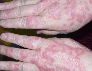 3、關節(jié)型牛皮癬:關節(jié)病型牛皮癬很少見,任何年齡均可發(fā)生,可同時發(fā)生于大小關節(jié),但常見是手腕、手指及足趾小關節(jié),脊柱關節(jié)也可發(fā)生。病變的關節(jié)有紅腫、疼痛。