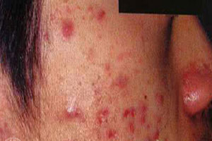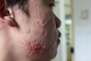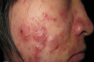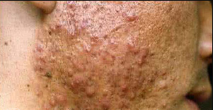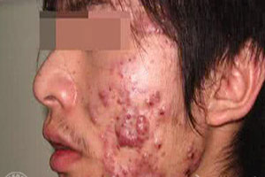 四級(jí)痤瘡:結(jié)節(jié)性痤瘡、囊腫性痤瘡、聚合性痤瘡,總皮損大于100個(gè),結(jié)節(jié)或囊腫大于3個(gè)。
