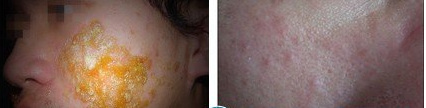 急性臉部濕疹的損害多形性,初期為紅斑,自覺灼熱、瘙癢。繼之在紅斑上出現(xiàn)散在或密集的丘疹或小水皰,搔抓或摩擦之后,搔破而形成糜爛、滲液面。日久或治療后急性炎癥減輕、皮損干燥、結痂、鱗屑,而進入亞急性期。慢性臉部濕疹是由急性、亞急性反復發(fā)作不愈演變而來,或是開始時即呈現(xiàn)慢性炎癥,常以局限于某一相同部位經久不愈為特點,表現(xiàn)為皮膚逐漸增厚,皮紋加深、浸潤,色素沉著等。主要自覺癥狀是劇烈瘙癢。