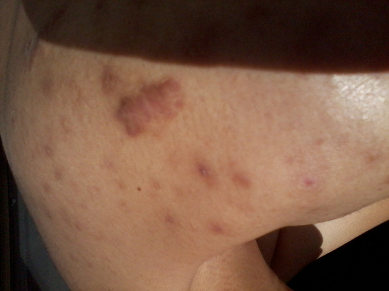 1、濕疹:濕疹是一種常見的表皮及真皮淺層炎癥性皮膚病。在臨床上有多種表現(xiàn),在病程發(fā)展中紅點(diǎn)、紅斑、丘疹、水皰、膿皰、糜爛、結(jié)痂等各型皮疹癥狀可循序出現(xiàn)。濕疹癥狀出現(xiàn)初期,皮膚浸潤增厚,逐步變成暗紅色及色素沉著;濕疹持久不愈時(shí),皮損紋變粗大,表現(xiàn)干燥而易發(fā)生皸裂,常見于手足、胸部、小腿、肘窩等處。