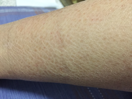(2)日常生活護(hù)理。魚鱗病患者在冬季洗澡不宜過勤,洗澡后要搽用護(hù)膚油脂,可保護(hù)皮膚柔潤,使鱗屑減少,并保持適當(dāng)?shù)乃趾妥銐虻臓I養(yǎng)成分。