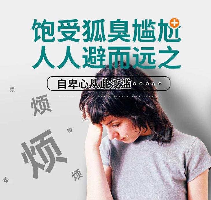 腋臭患者引起自身散發(fā)的臭味受到周圍人的“避而遠之”甚至歧視,更是在精神上受到無情的打擊,因為被“排擠”而自卑、壓力大,繼而睡眠差、脾氣暴躁等。此外,腋臭并發(fā)原因之一是細菌的存在,不斷滋長的細菌會促使皮膚產生一系列皮膚病,腋下的皮膚比較薄弱,因患者的不當用藥、偏方治療,或者香水掩蓋臭味,皆可加重皮膚負擔。