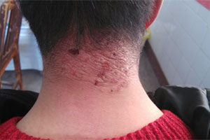3、神經(jīng)性皮炎:主要發(fā)生于暴露易摩擦部位,一年四季皆可發(fā)病,但以冬季多發(fā)或者加重。在中醫(yī)屬于“皮疴”等范疇。多見于青壯年,主要見于頸后、兩側(cè)、肘后、骶尾以及外陰等處。病起之初有瘙癢而無皮損,以后因瘙抓出現(xiàn)抓痕、脫屑、血痂,以后逐漸苔蘚化,形如皮革,堅(jiān)厚無比。