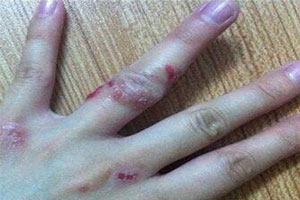 6、手足皸裂癥:手足皸裂癥是發(fā)生于秋冬季的一種物理性皮膚病,在中醫(yī)屬于“皴裂瘡”、“干裂瘡”、“皸裂瘡”等范疇。多發(fā)于工人、農(nóng)民、漁民和手工行業(yè)(如飲食業(yè)、理發(fā)業(yè)和環(huán)衛(wèi)業(yè)者等)。主要表現(xiàn)為手掌、足跖部位皮膚增厚、干燥、粗糙、皸裂、出血,容易并發(fā)細(xì)菌感染。